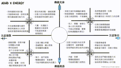 - 能量注意力象限導覽圖: 幫你快速學習參考可能的各種狀態。